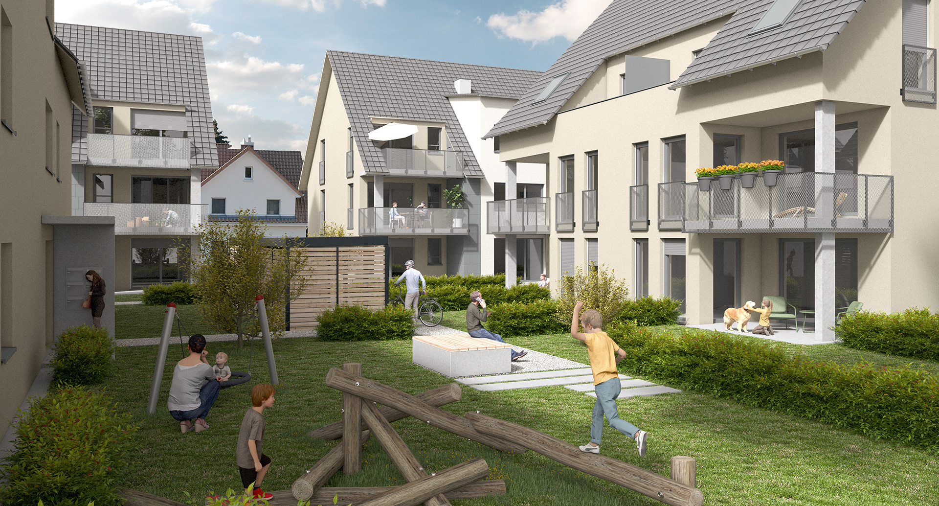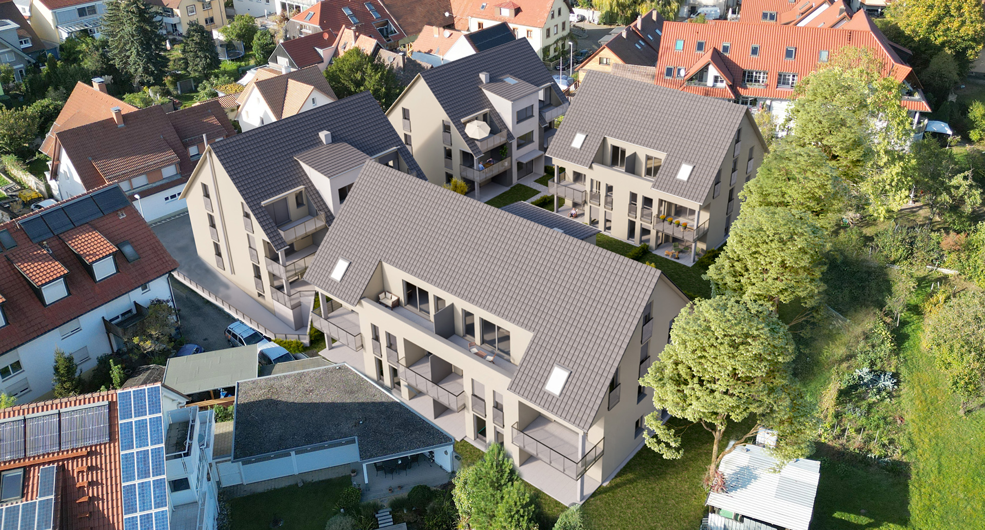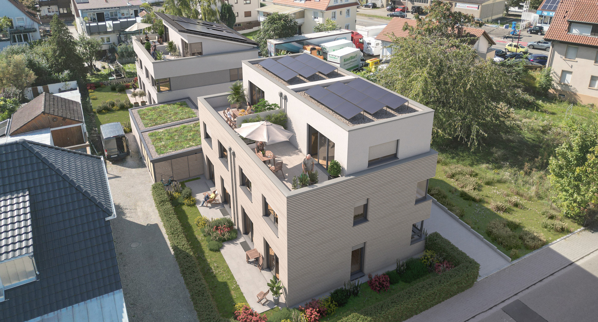 4 Mehrfamilienhäuser mit 28 Wohnungen als KFW 55 Standard